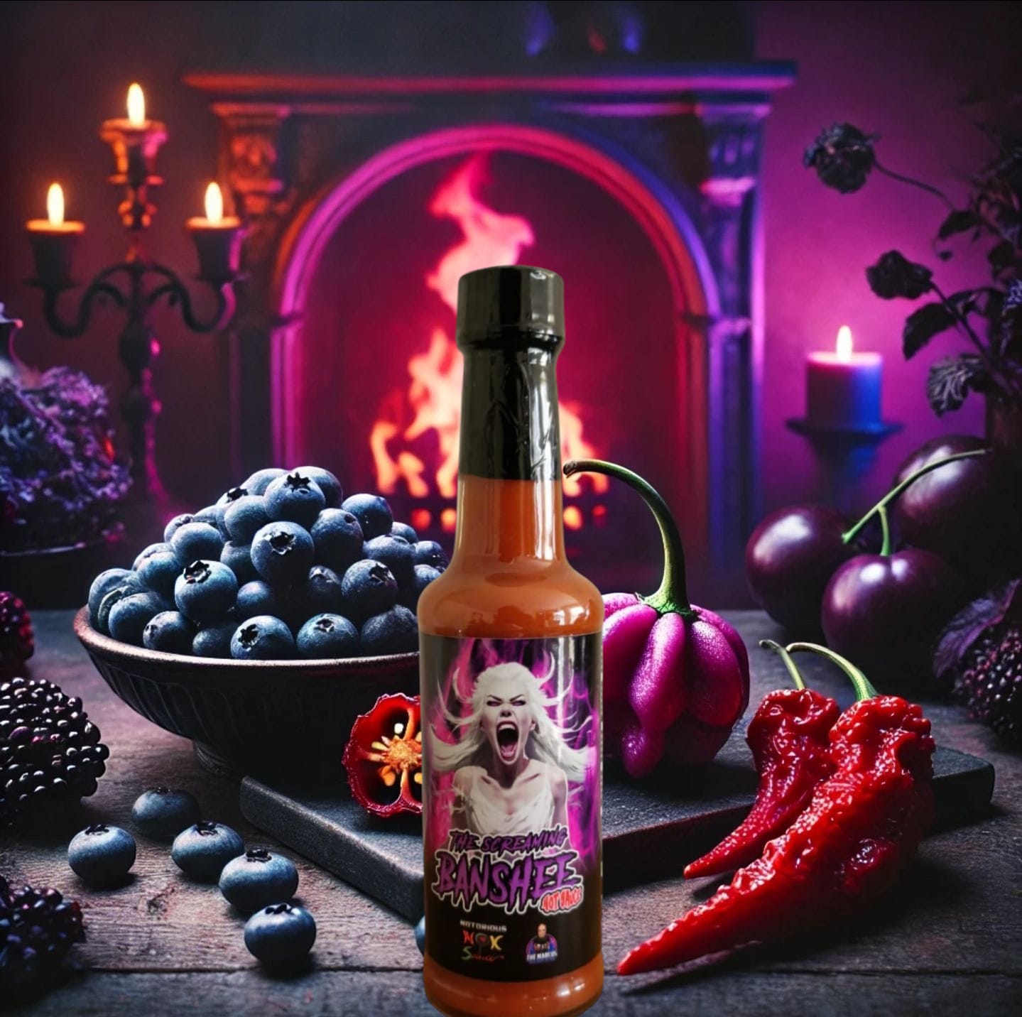 The Screaming Banshee is our hottest sauce. We have a wide selection to suit any palate, just look for the chilli heat ratings on our labels.